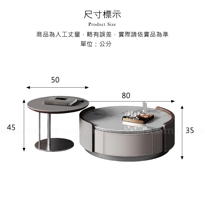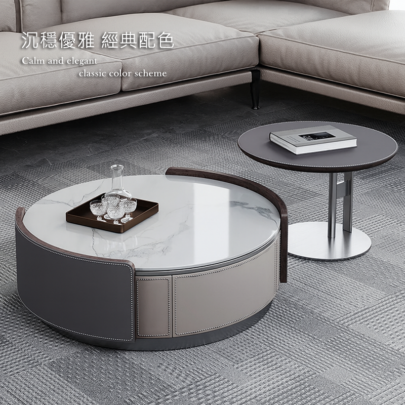 【商品介紹】 ● 商品名稱:K09-02-42托瑪士義式岩板茶几組 【尺寸規格】 ● 尺寸約: 大圓直徑80*高35公分