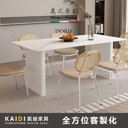 K34-01-54 朵莉絲義式輕奢奶油風白色腳座岩板餐桌