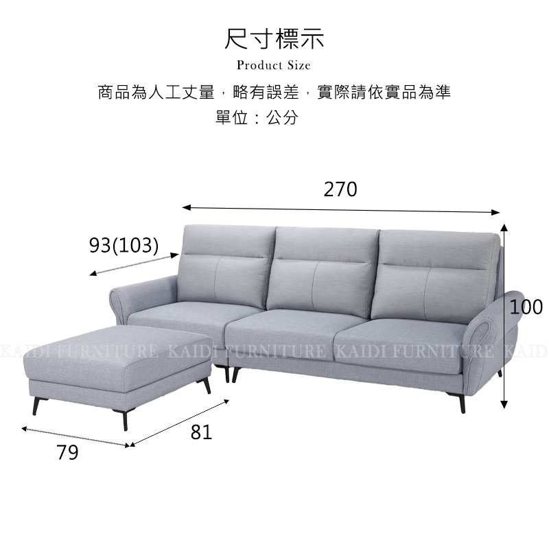 一字型:一字型:總寬270*總深93-103*總高100公分 商品編號: KD48C
