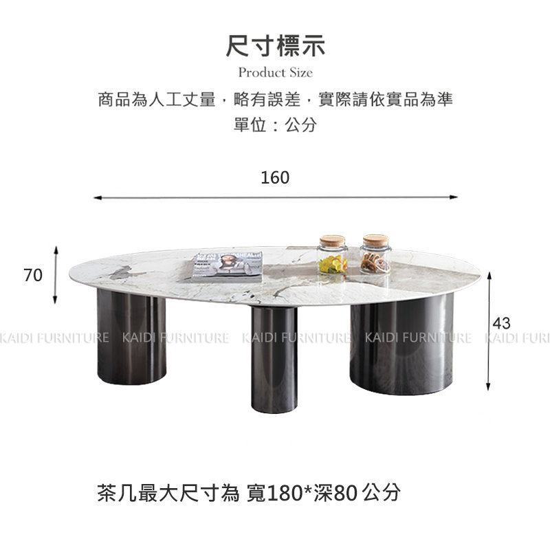 【商品介紹】 ● 商品名稱:K34-02-28 柯特義式輕奢不鏽鋼腳岩板茶几/可訂大尺寸 ● 自取商品在下標前請先詢問是否仍有庫存,以免白跑一趟,避免不必要的爭議。 桌面尺寸可訂製,訂製的價格會根據桌面尺寸大小而有所不同,如有疑問,歡迎洽詢客服 [商品為人工丈量略有誤差,請依實品為準] 【商品說明】 ● 材質:岩板桌面/不鏽鋼腳(黑鈦) 【其他備註】 ● 單件運費 500 元起